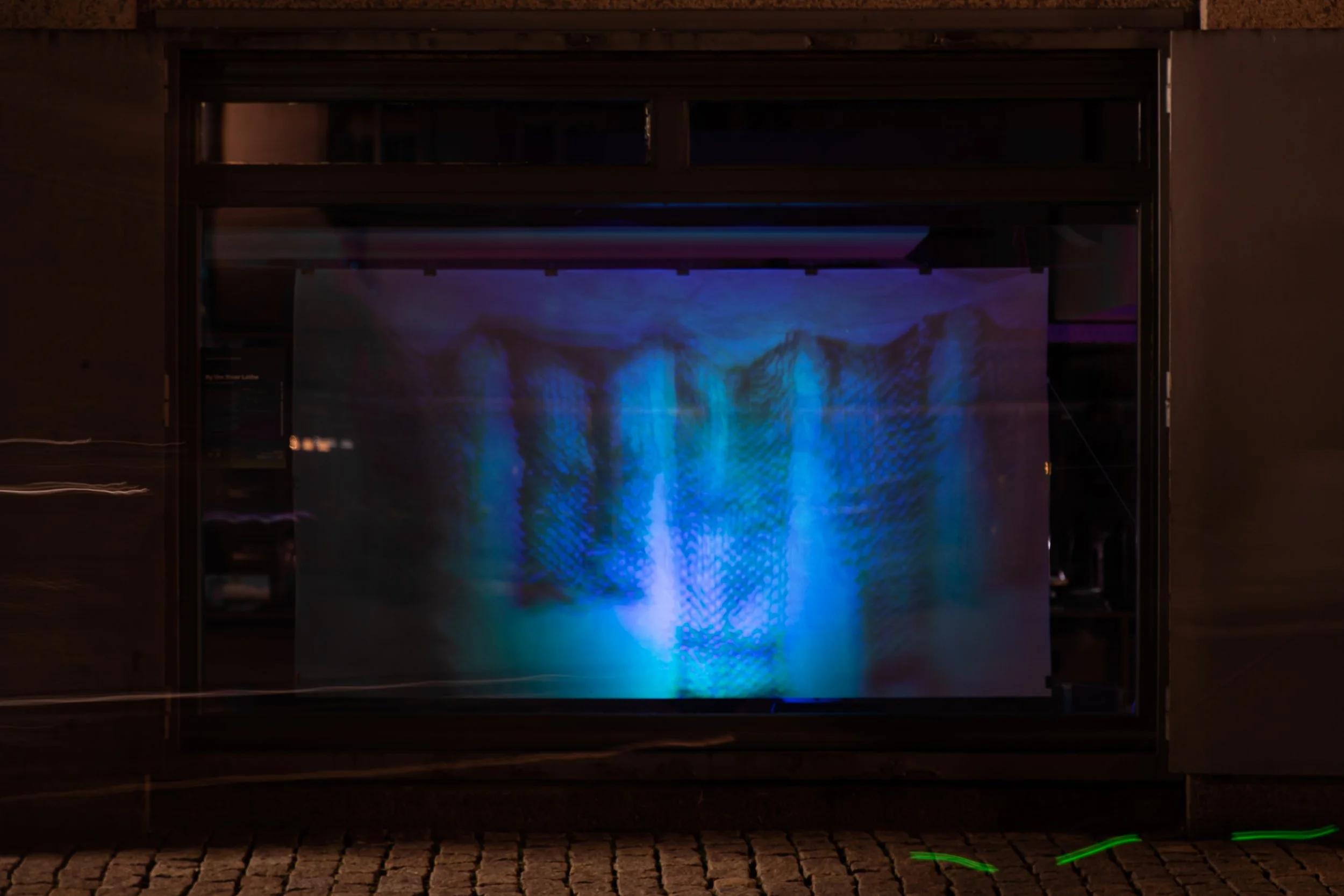 The transitional space deals with short-lived experience and temporary sensation. The passing by-ers cannot touch it, cannot decipher its mysterious make-up, but they get anesthetized by its slow movement and glow.